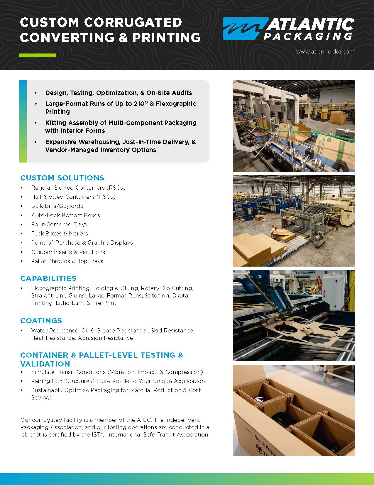 “Our expansive offering of corrugated products and best-in-market lead times set us apart from our competitors in the packaging space. If you are in need of custom corrugated packaging, Atlantic is your go-to.”